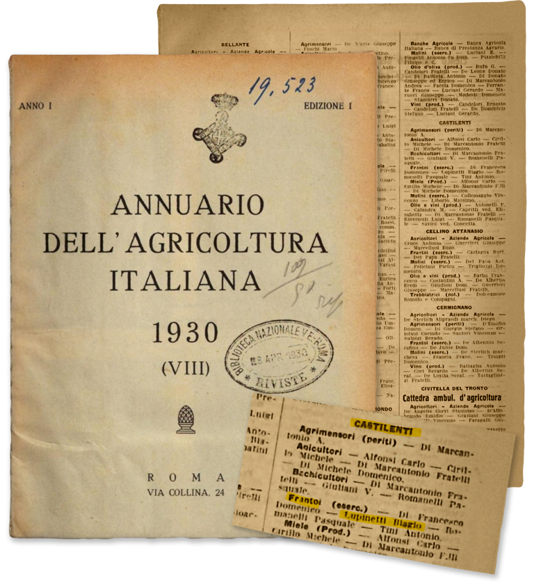 In 1930, the Italian agriculture yearbook proudly mentioned the four olive mills of Castilenti, including the mill of the Lupinetti Biagio family. Here, extra virgin olive oil was produced using stone mills, with dedication and artisanal care.